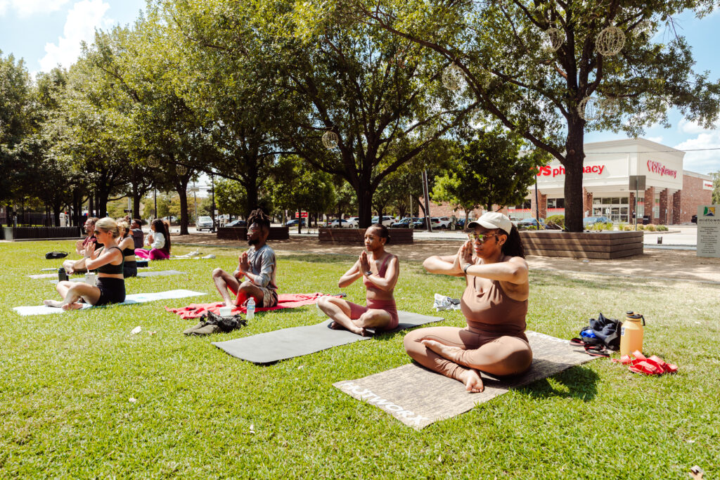 On a sunlit Saturday morning in Midtown, Houstonians came together for a one-of-a-kind yoga and meditation experience, part of the HueMan:Shelter public art project. Led by artist and anthropologist Marlon F. Hall, “Hueman Home” invited participants to reconnect with their sense of belonging, healing, and home, both within themselves and throughout the city they share.